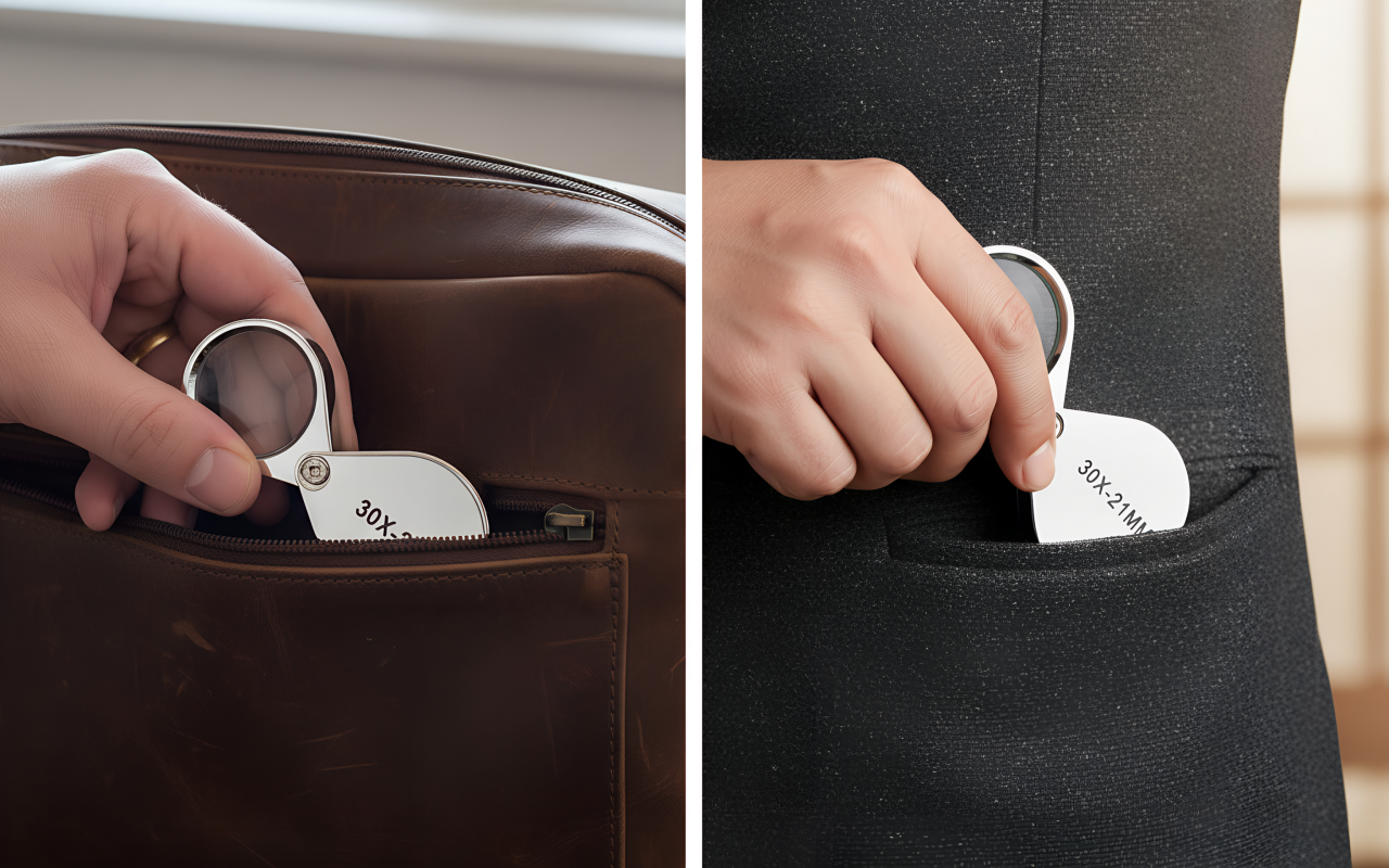 Lett ramme glir enkelt ned i enhver lomme eller pose. Du har alltid kraftig forstørrelse tilgjengelig uansett hvor du går.