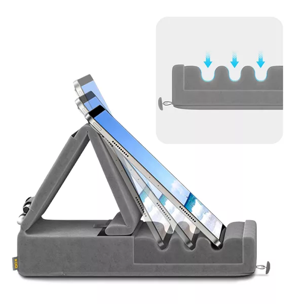 Hold hendene fri mens du leser, ser på film eller videosamtaler med Ortorex nettbrettholder. Den myke, men faste basen sikrer at enheten din holder seg på plass uten å skli. En praktisk sidelomme kan oppbevare småting dine lett tilgjengelig.