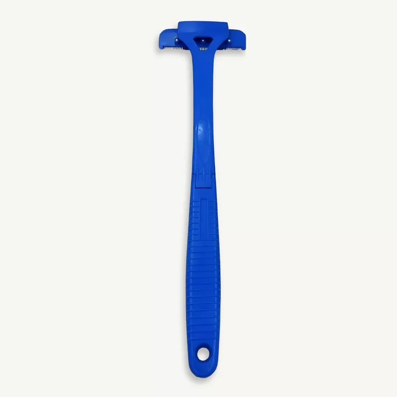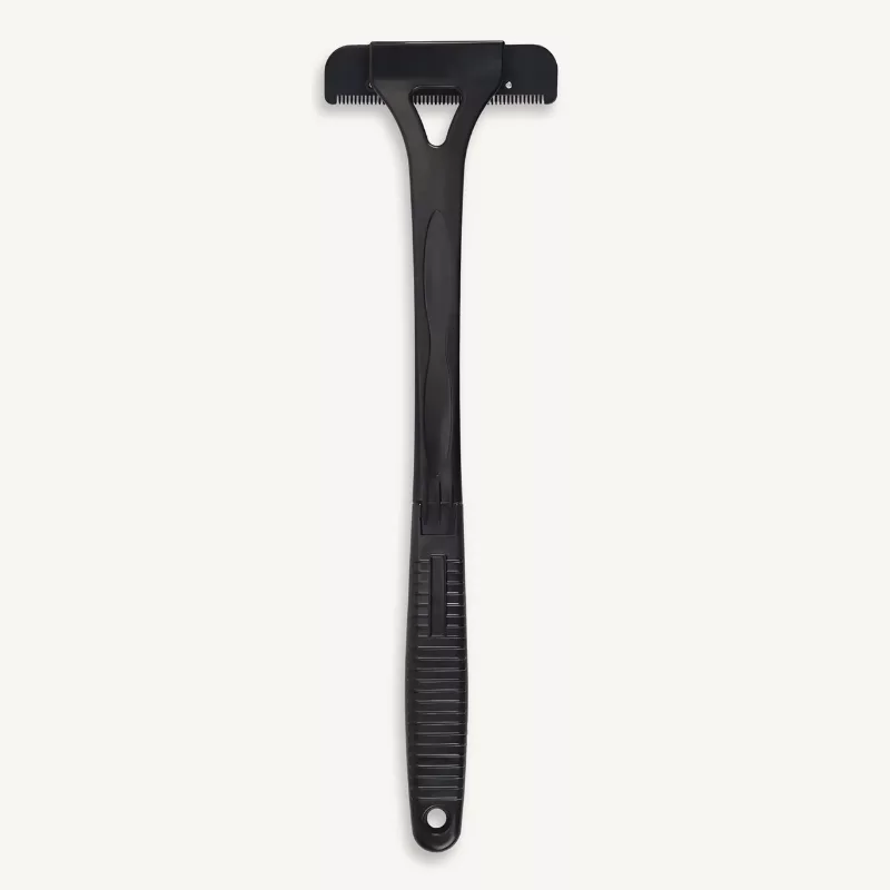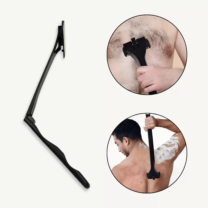 Denne barberhøvelen er perfekt for å bruke alene. Håndtaket når midten av ryggen min og de skarpe bladene barberer alt på ett drag.