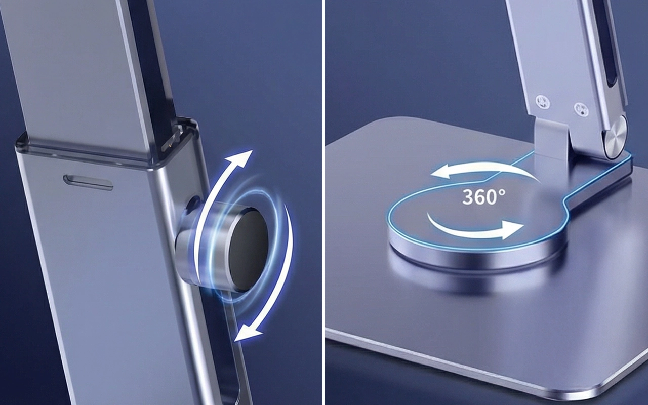 Juster skjermen din smidig for perfekt sikt. Hver oppgave føles lettere med presis posisjonering.