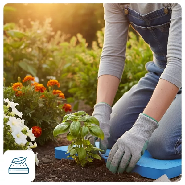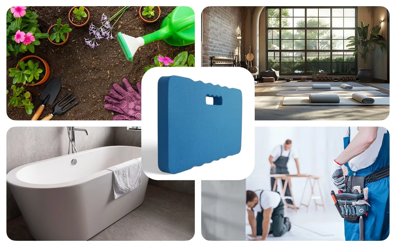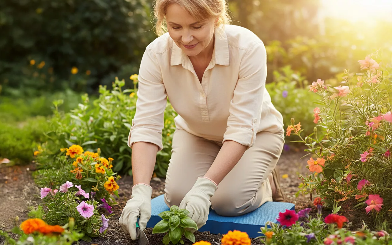 Polstringen absorberer trykket fra harde gulv eller fuktig gress. Det føles behagelig å knele, noe som reduserer verk og ømhet.