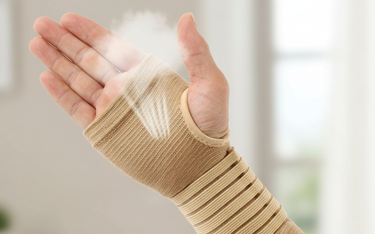 Denne bandasjen gjør at håndleddene mine føles mye bedre etter en lang dag med pakking av esker. Den klør ikke i det hele tatt.