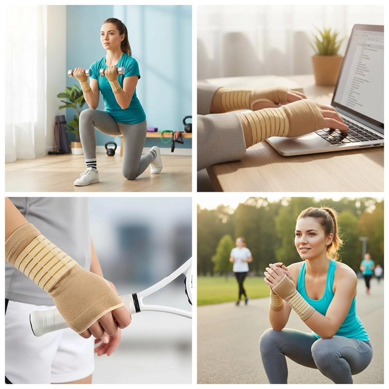 Håndleddsbandasjen føles myk og fleksibel, og hånden min blir ikke svett selv etter å ha brukt den hele dagen. Den tar bort smerten i håndleddet nesten umiddelbart.