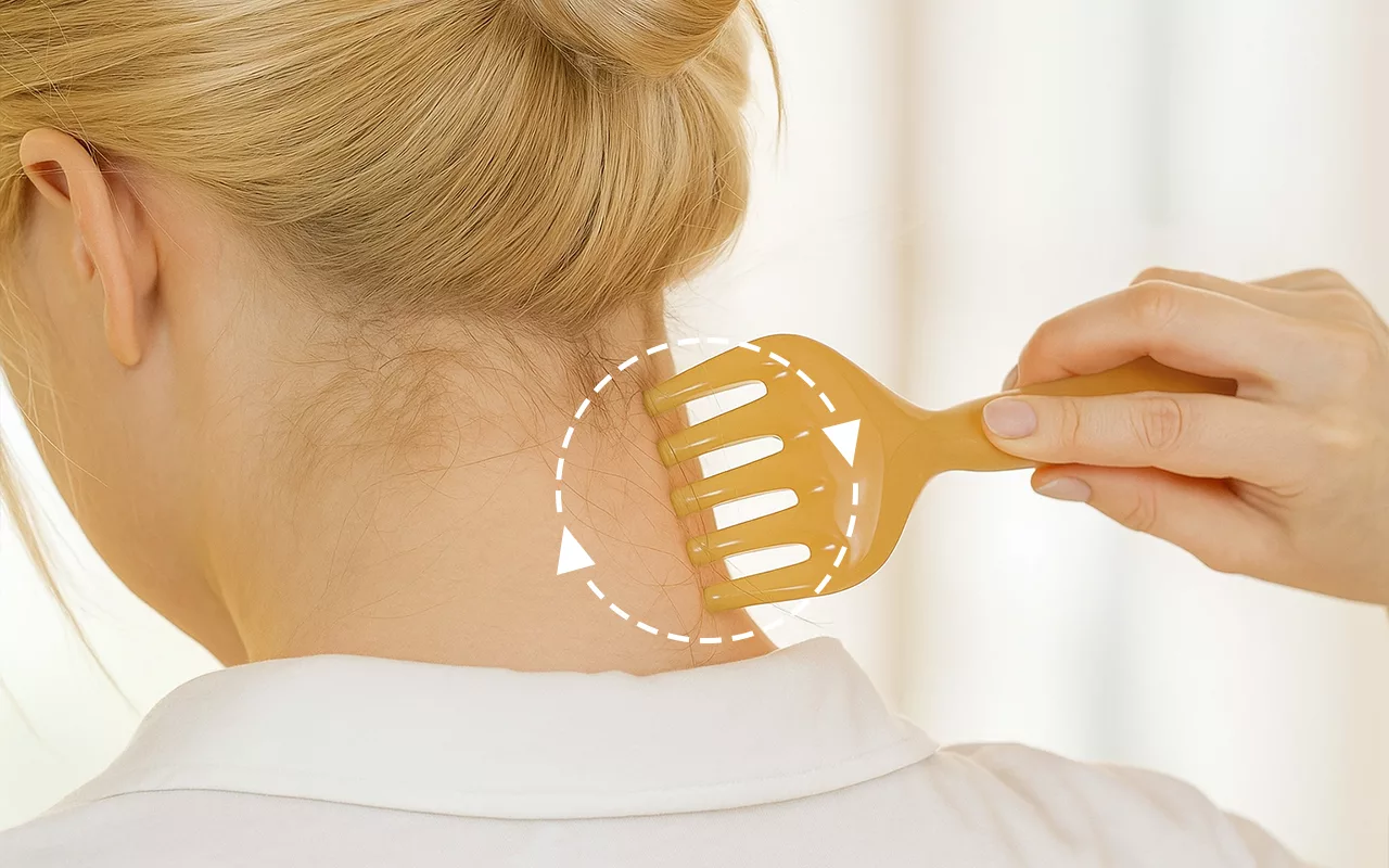 Skånsom stimulering fremmer blodstrømmen for en sunnere hodebunn. Friske næringsstoffer når hårsekkene og støtter naturlig vekst.