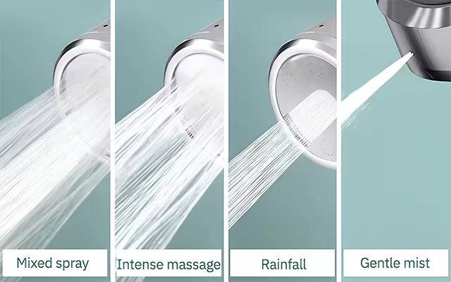 Du kan velge mellom mild tåke, intens massasje, regn eller blandet stråle. Hver innstilling gir en unik følelse som sikrer avspenning og komfort.