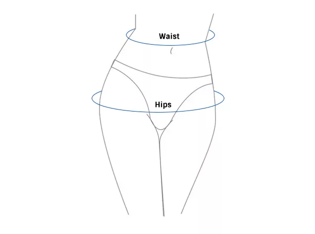 - 1. Plasser målebåndet rundt den smaleste delen av midjen og den bredeste delen av hoftene.