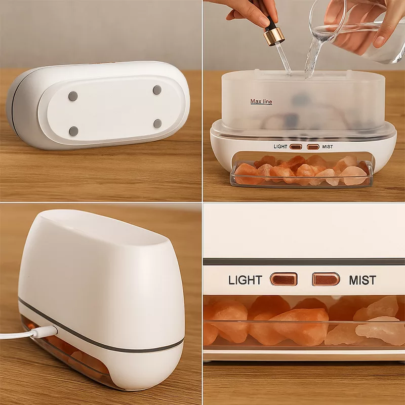 Familien min merker en stor forbedring med tørr luft når vi bruker denne. De salte krystallene er en stilig detalj, og den er ikke bråkete i det hele tatt.