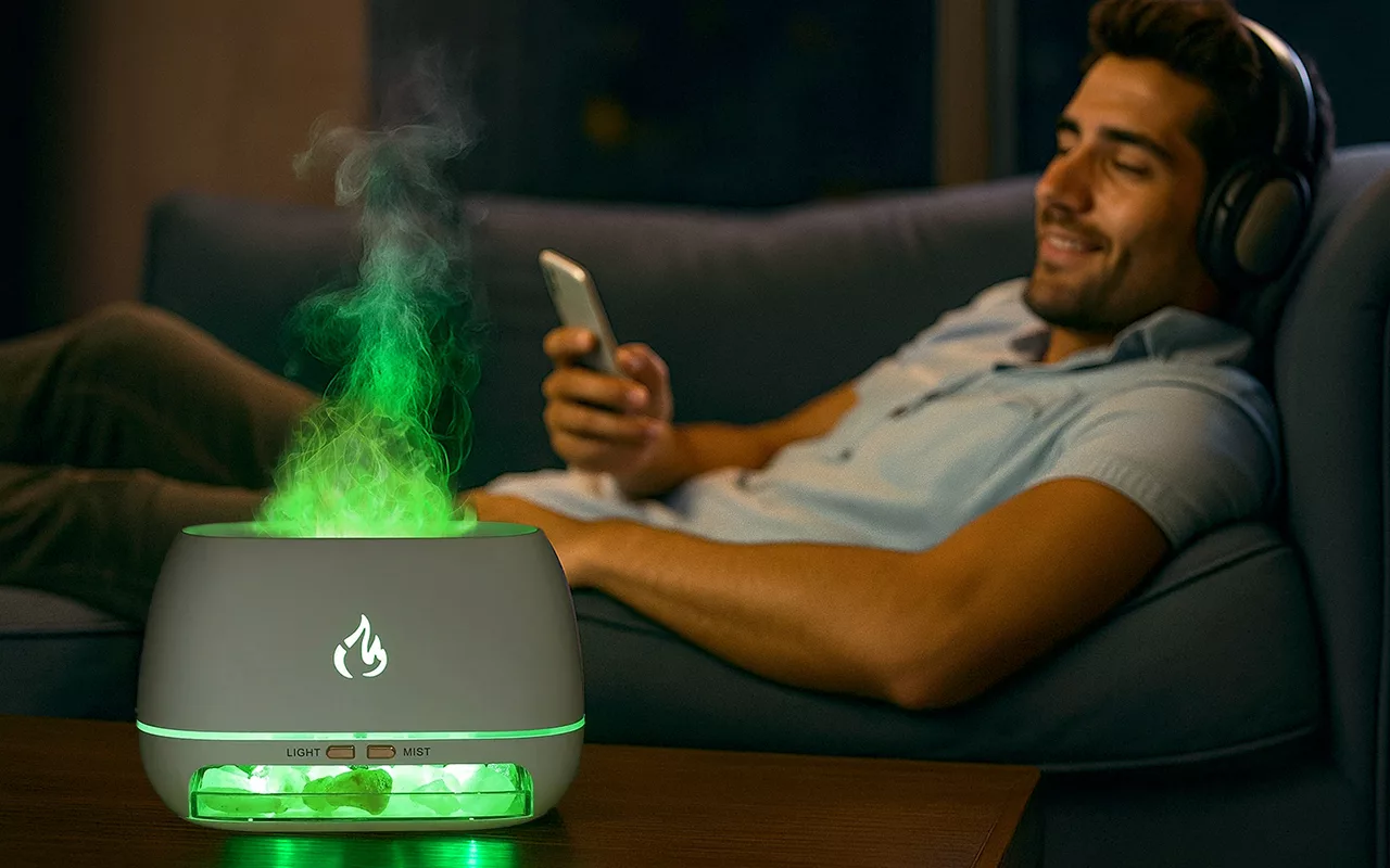 Flammeeffekten er så vakker i mørket. Jeg bruker beroligende oljer i den, og jeg sover alltid som en baby nå.