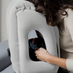 Min favoritt å ta med på fly nå. Så behagelig og lett å justere hvis jeg vil ha den mykere eller fastere. Ingen stiv nakke lenger.