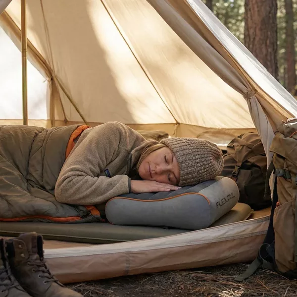 Jeg elsker hvor liten denne puten kan pakkes sammen til camping. Superenkel å blåse opp og støtten for nakken gjorde at det ble mye mer behagelig å sove ute.