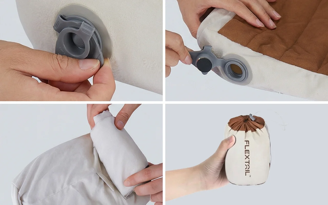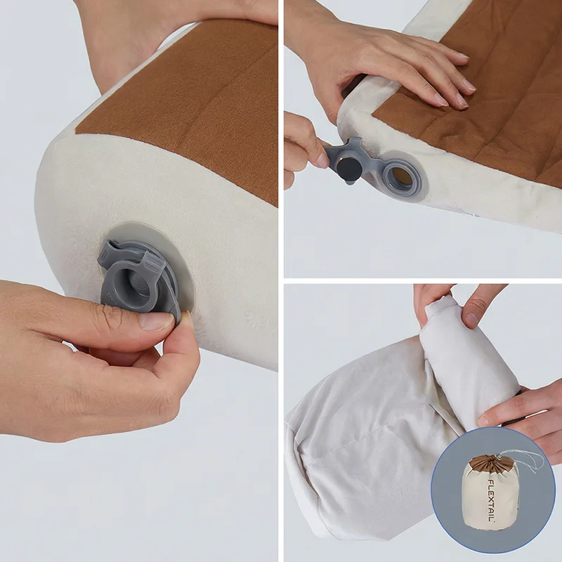 Blåser seg raskt opp og gir en behagelig støtte for lurer.