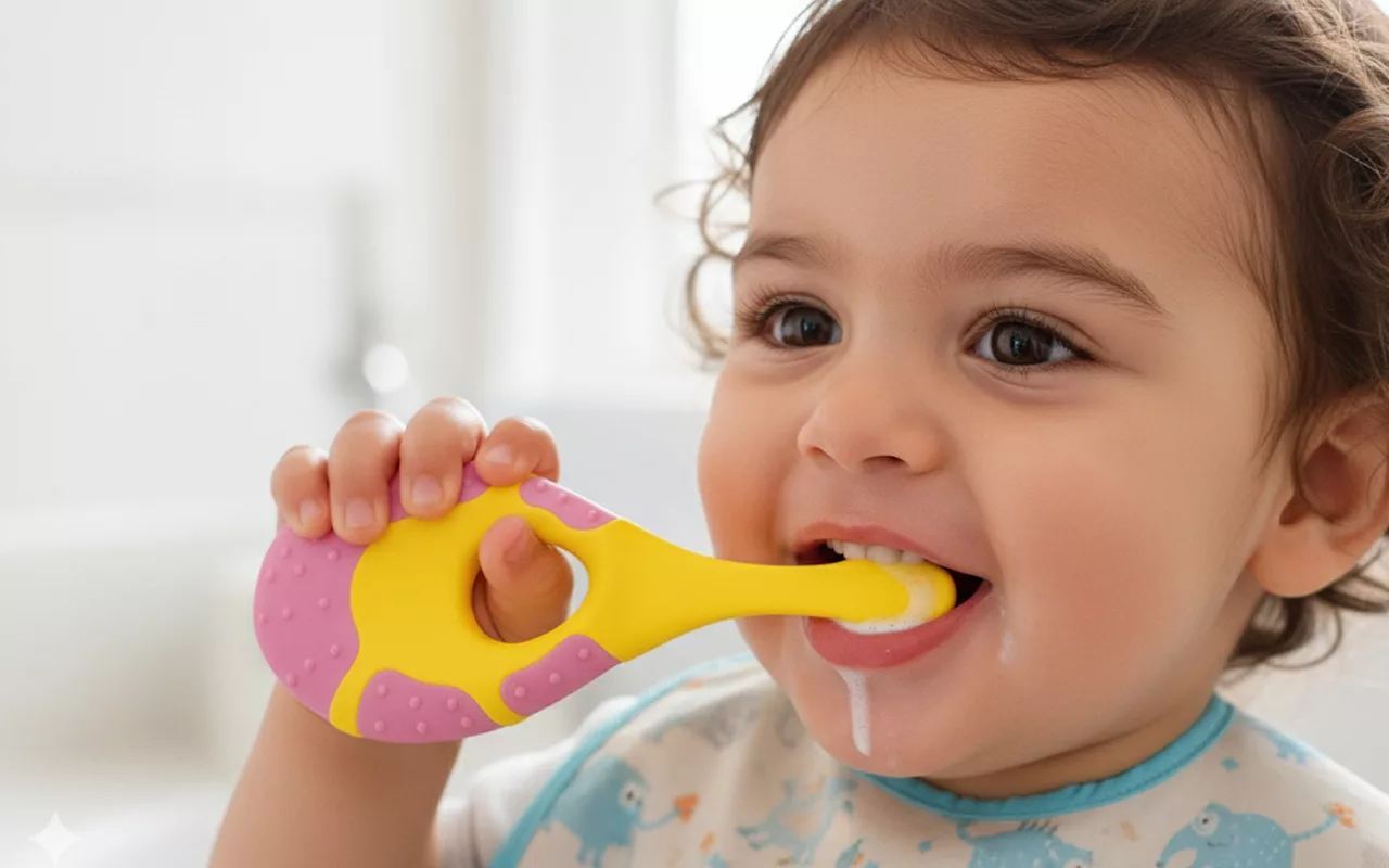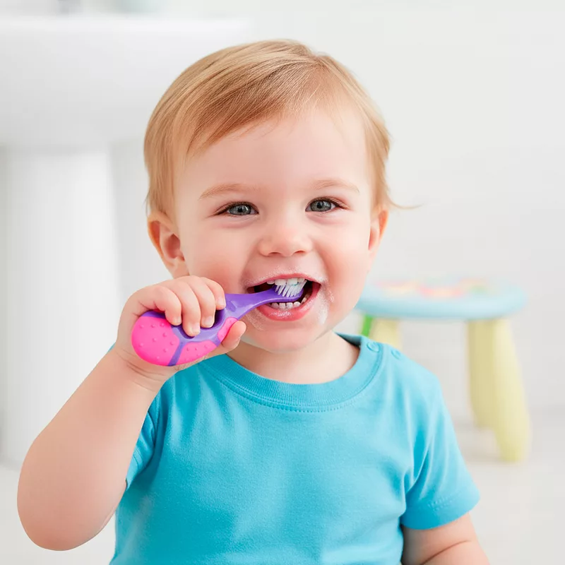 Det brede ergonomiske håndtaket passer perfekt i små hender. Barn lærer seg raskt å pusse selvstendig, mens foreldre kan hjelpe med selvtillit.