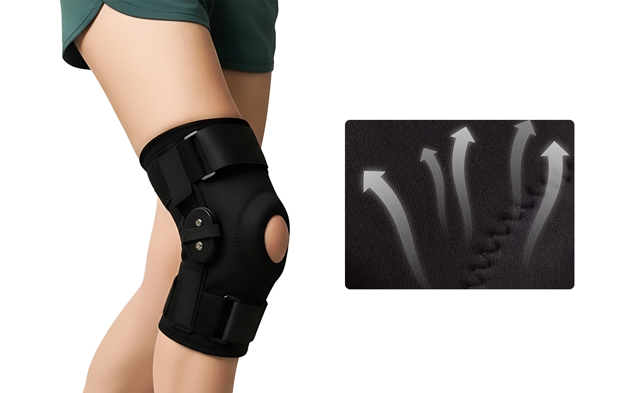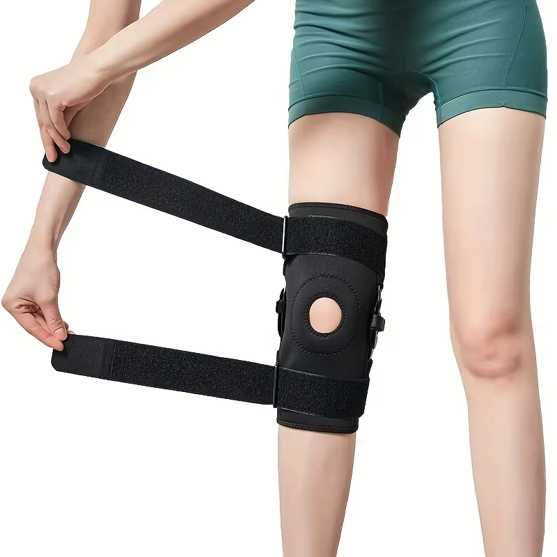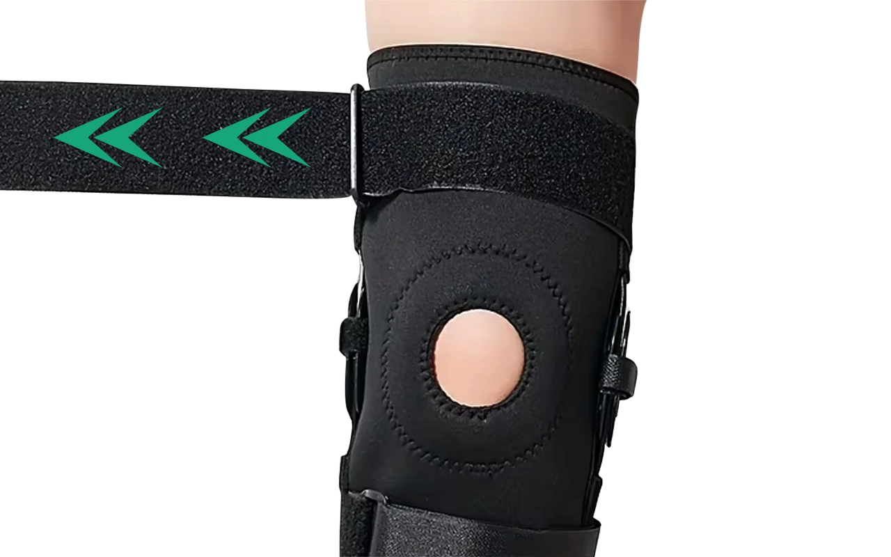 Sidepanelene holder kneet stabilt under gange eller sport. Støtten holder seg fast og hjelper til å unngå vridninger eller plutselige bevegelser.