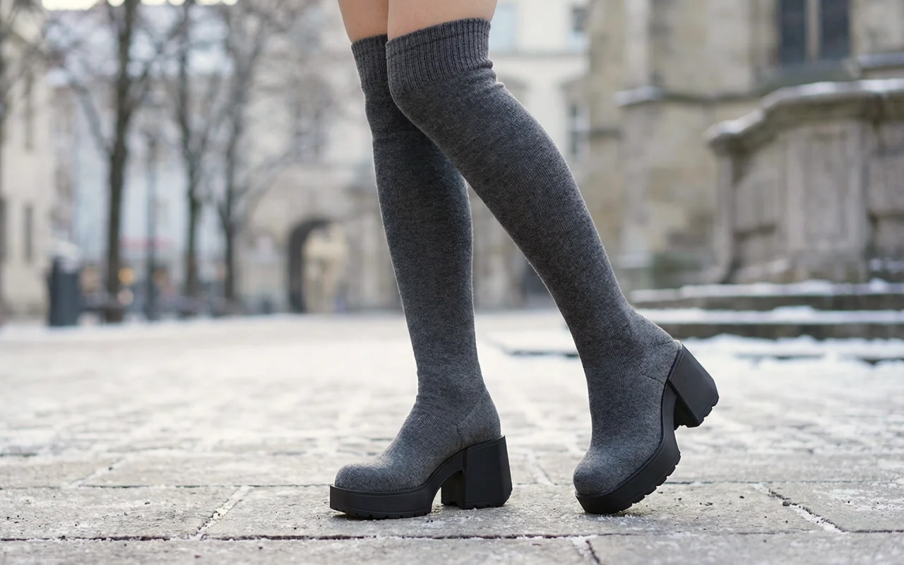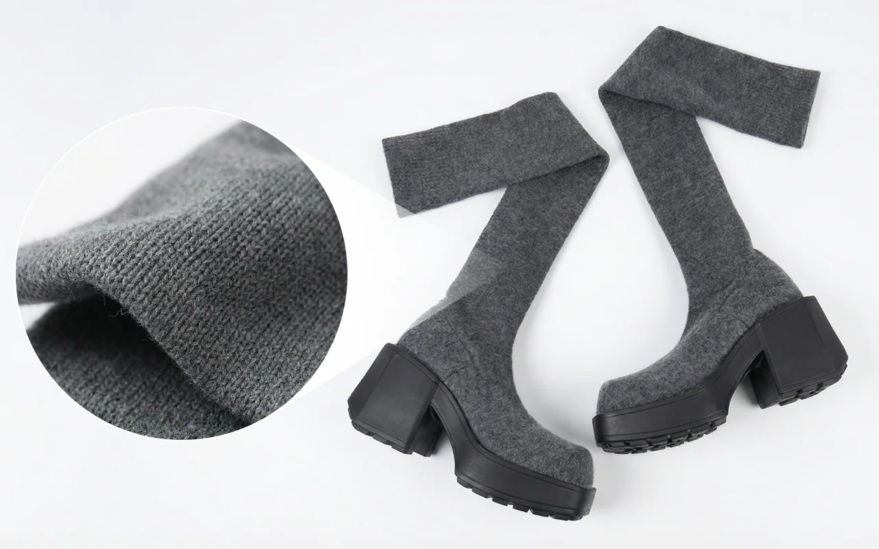 Tykt, strikket skaft holder ben og føtter varme ute. Kraftig plattform beskytter mot våte fortau og kaldt vær.