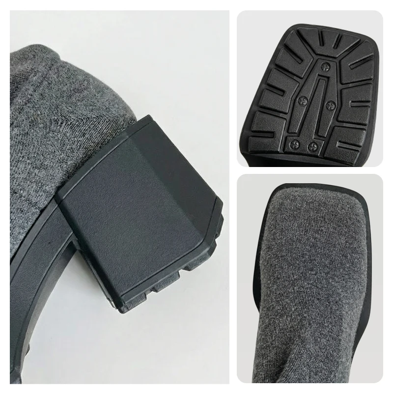 Ta på deg Ortorex-støvlene og kjenn umiddelbar komfort og støtte. Koselig strikket materiale omslutter bena dine forsiktig uten å gnage eller skli. Tykk såle gjør det lettere å gå og holder føttene trygge fra kalde gulv. Disse skoene gir høyde uten å gjøre balansen vanskelig.