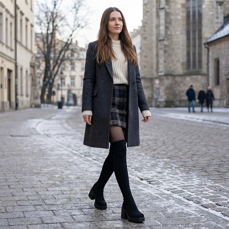 Tykt, strikket skaft holder ben og føtter varme ute. Kraftig plattform beskytter mot våte fortau og kaldt vær.