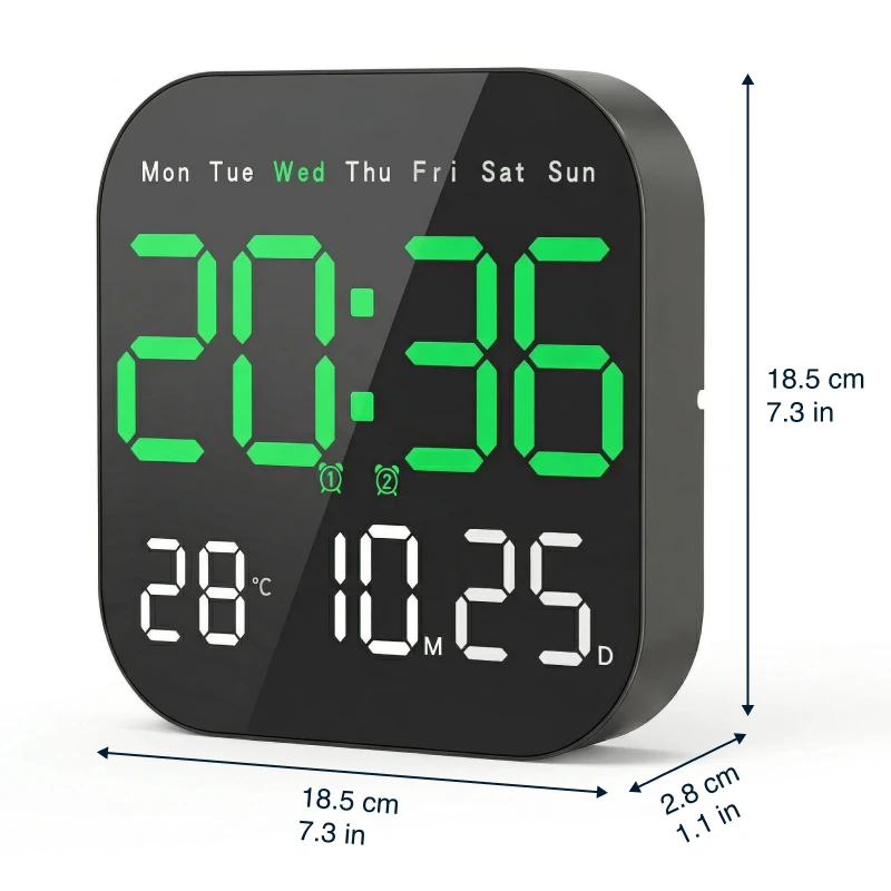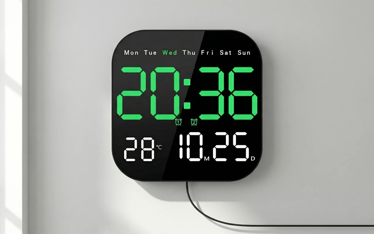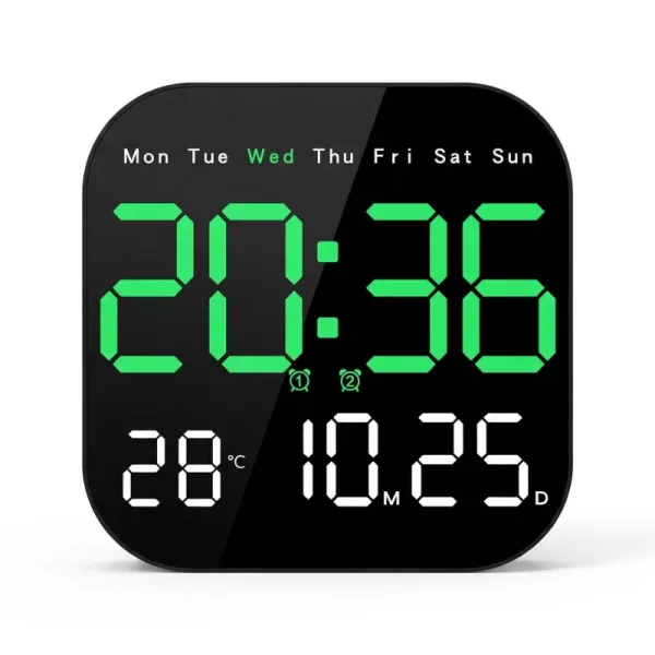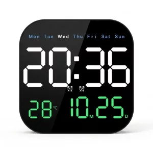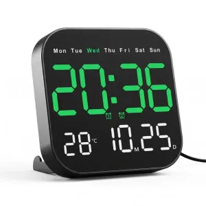 Kjøpte denne digitale klokken til kjøkkenveggen vår og elsker hvor lett det er å lese klokkeslett, dato og temperatur på avstand.