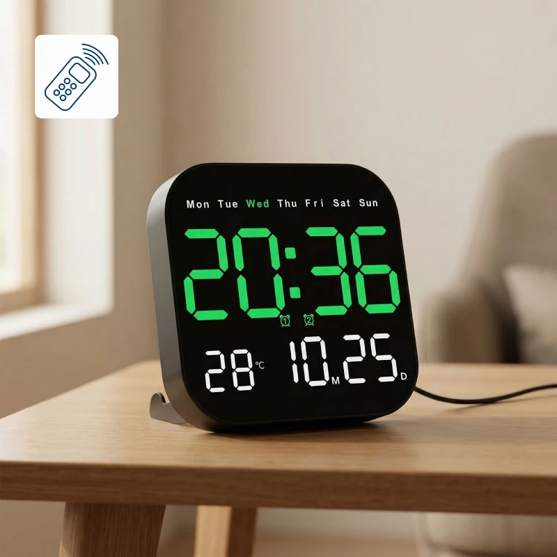 Ga denne klokken til moren min; hun elsker å se hele kalenderen med et blikk og å slippe å styre med små knapper takket være fjernkontrollen.