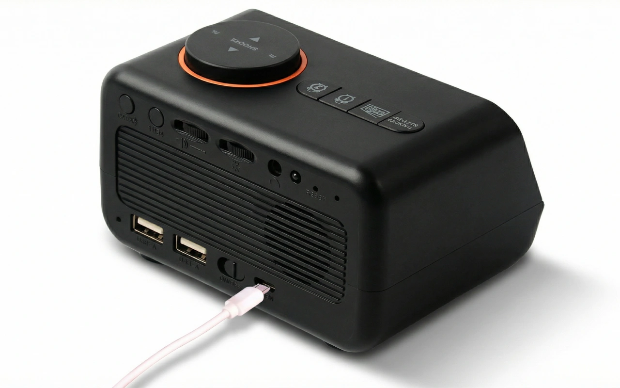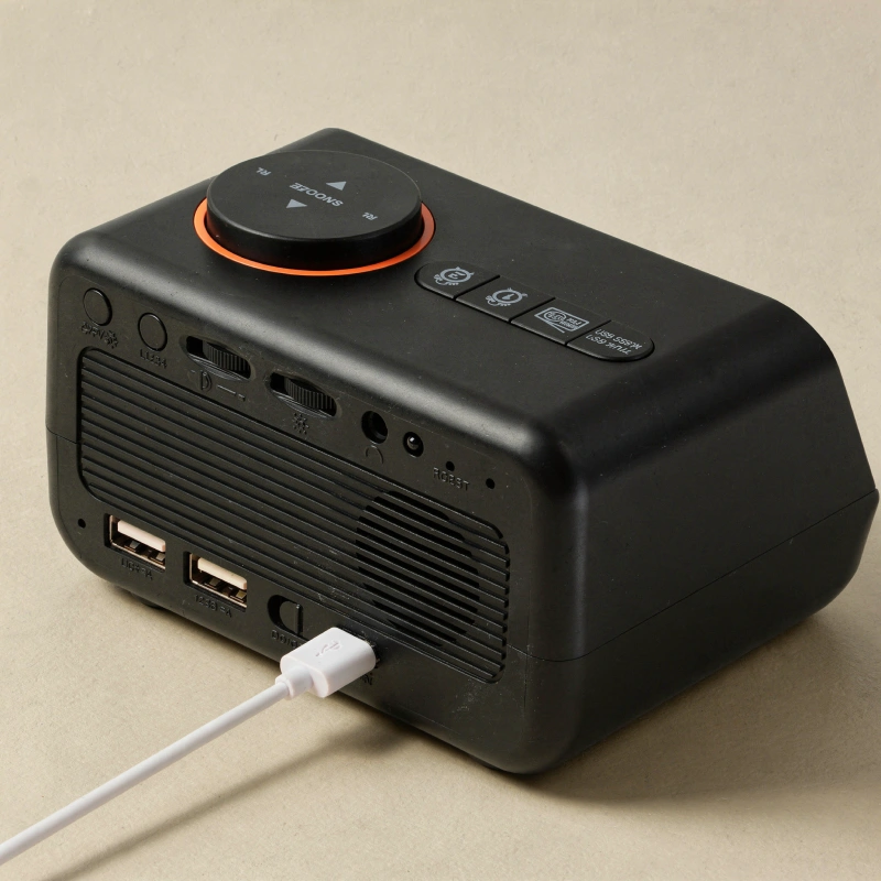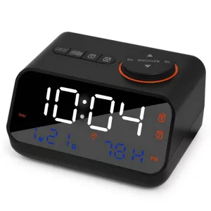 Sjekk temperatur, luftfuktighet og kalender hver gang du ser bort på klokken. Doble USB-porter gjør lading av enheter rask og problemfri.