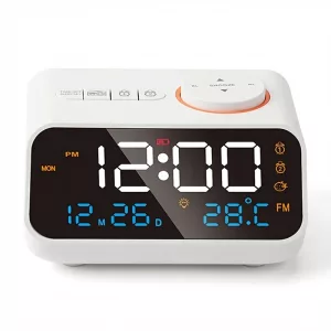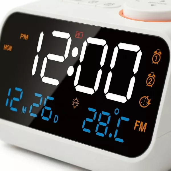 Kjøpte denne lille klokken til soverommet vårt og elsker den. De store tallene, radioen og værinformasjonen gjør morgnene enklere for hele familien vår.