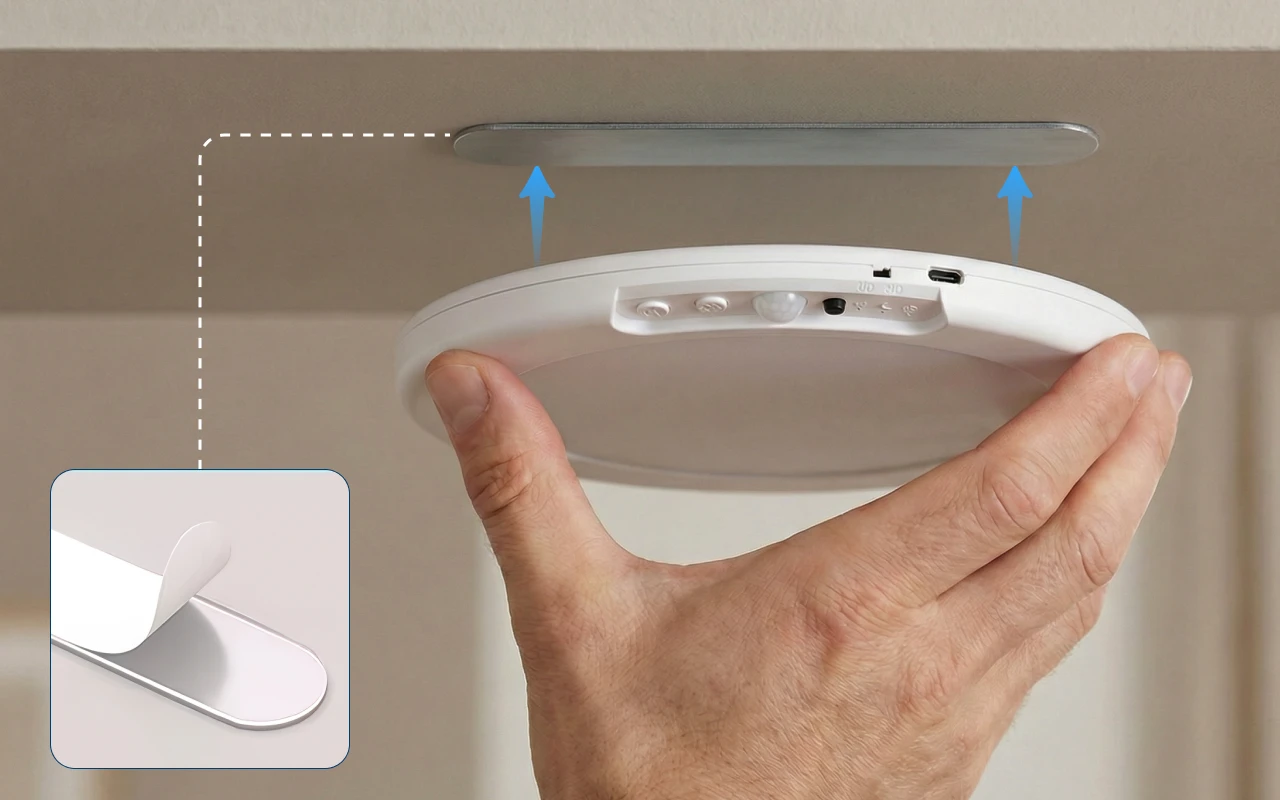Monter Ortorex taklampe på sekunder med kraftige magneter. Ingen verktøy eller kompliserte instruksjoner er nødvendig.