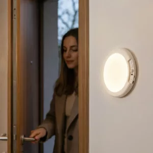 Slutt å slite i mørke hjørner med Ortorex taklampe. Denne smarte lampen registrerer bevegelse og slår seg automatisk på. Endre fargetemperatur for komfort med den medfølgende fjernkontrollen.