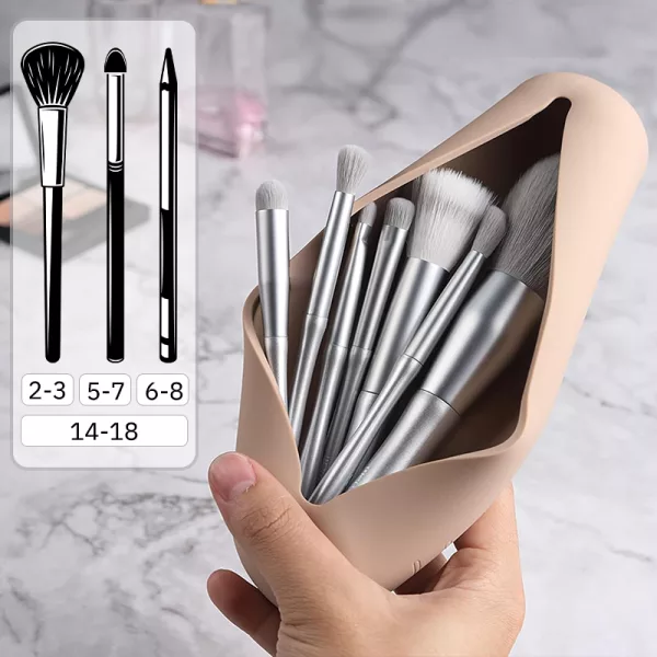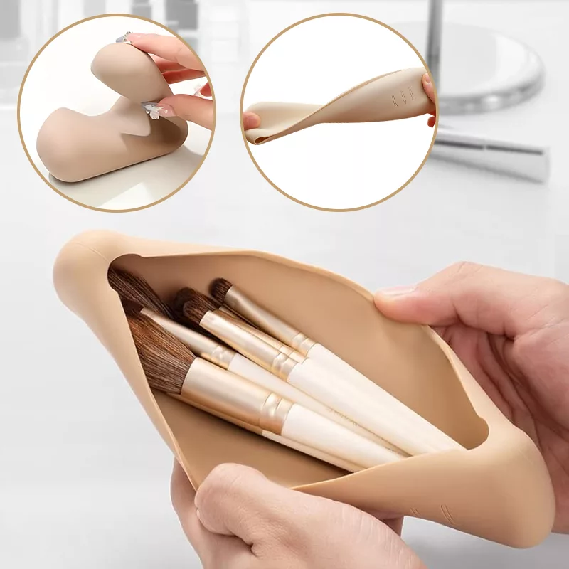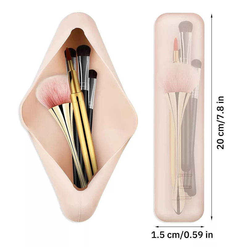 Vesken rommer hele børstesamlingen min. Den er enkel å rengjøre og jeg har den med meg overalt. Ingen rare lukter, bare glatt silikon.