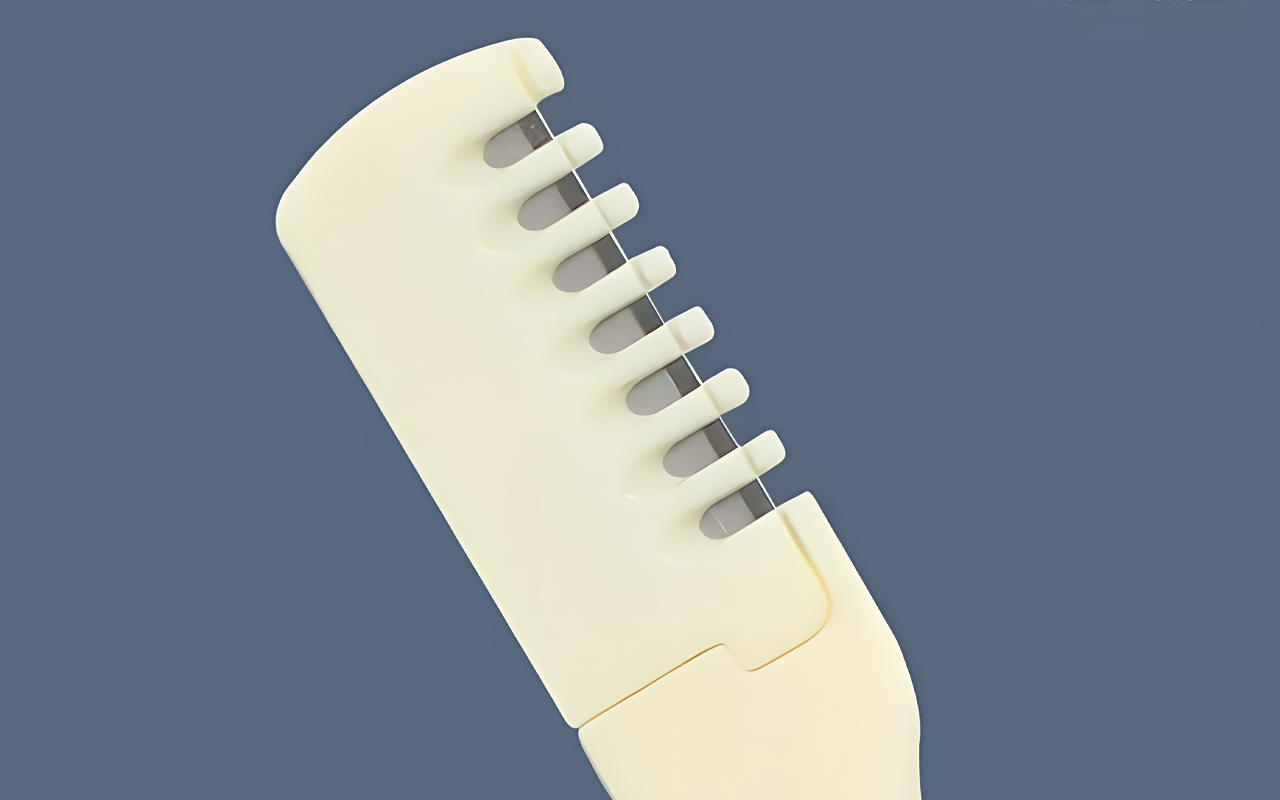Avrundede tupper bidrar til å forhindre kutt mens du trimmer håret. Den beskyttende kammen skjermer følsom hud fra utilsiktede småskader.