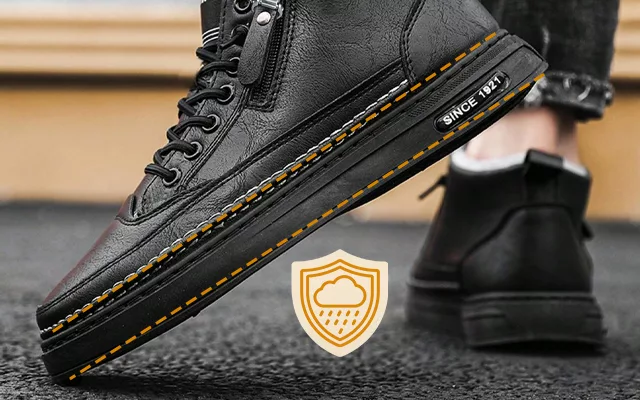 Tykk såle beskytter mot kalde fortau og fuktig bakke. Regnværsdager er ikke noe problem, føttene forblir tørre og beskyttet.
