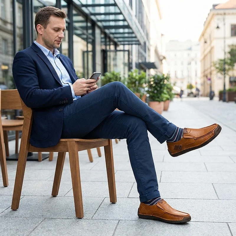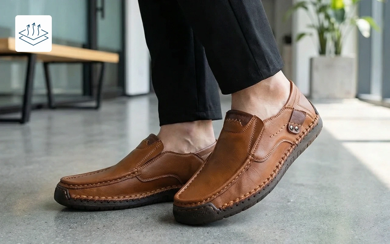Ortorex loafere gir enestående komfort gjennom hele den travle dagen. Lett design bidrar til at føttene føles friske og avslappede. Fleksible såler gir smidig bevegelse på byens gater eller innendørs. Slip-on-stilen sparer verdifulle minutter når du skal ut.