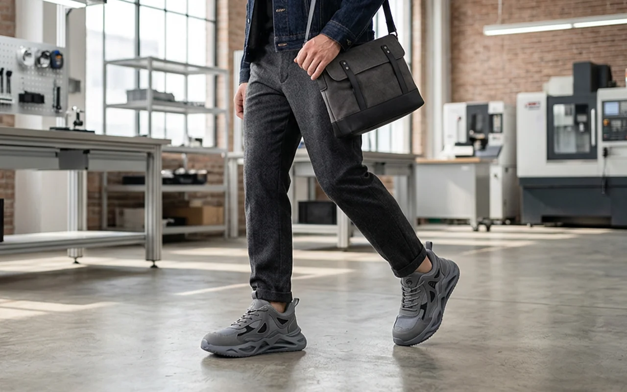 Jeg står på beina på fabrikk ti timer daglig. Disse skoene er lette, demper hvert steg, og tåkappen gjør at jeg føler meg trygg når paller blir flyttet rundt.
