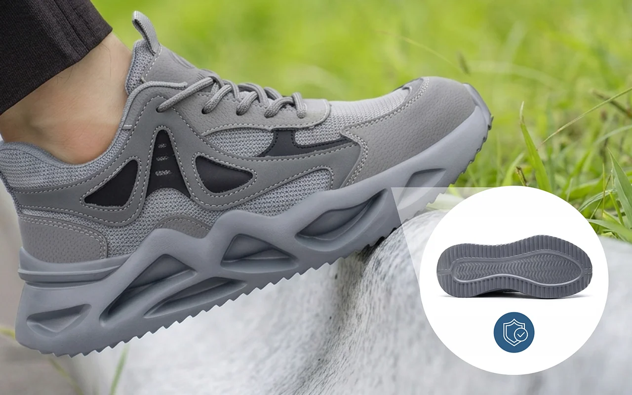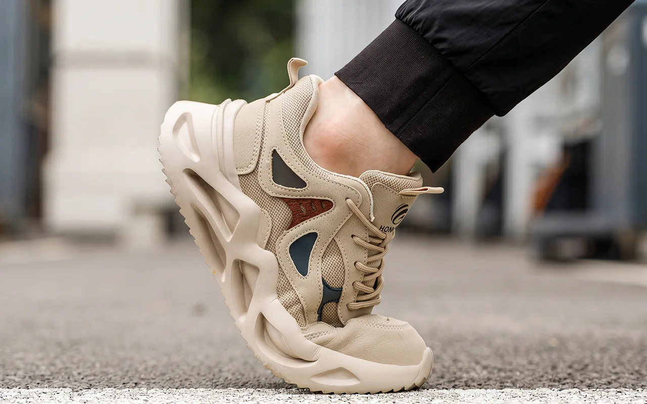 Ortorex-fottøy bruker beskyttende mellomsåler som blokkerer spiker, skår og skarpt skrap. Trygge skritt erstatter bekymrede blikk nedover på ujevne, uforutsigbare gulv.