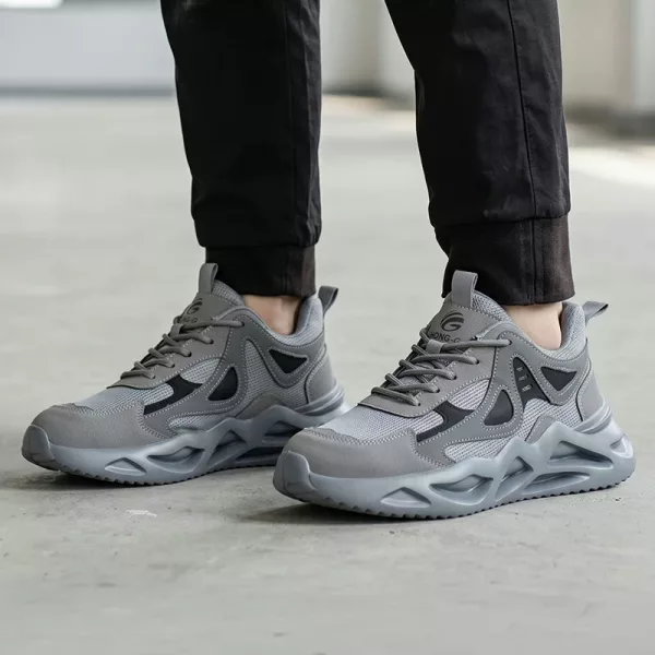 Kjøpte disse for lange skift på lageret, og føttene mine verker endelig ikke om natten. Tærne føles trygge, meshstoffet holder dem kjølige, og de ser ut som vanlige joggesko.