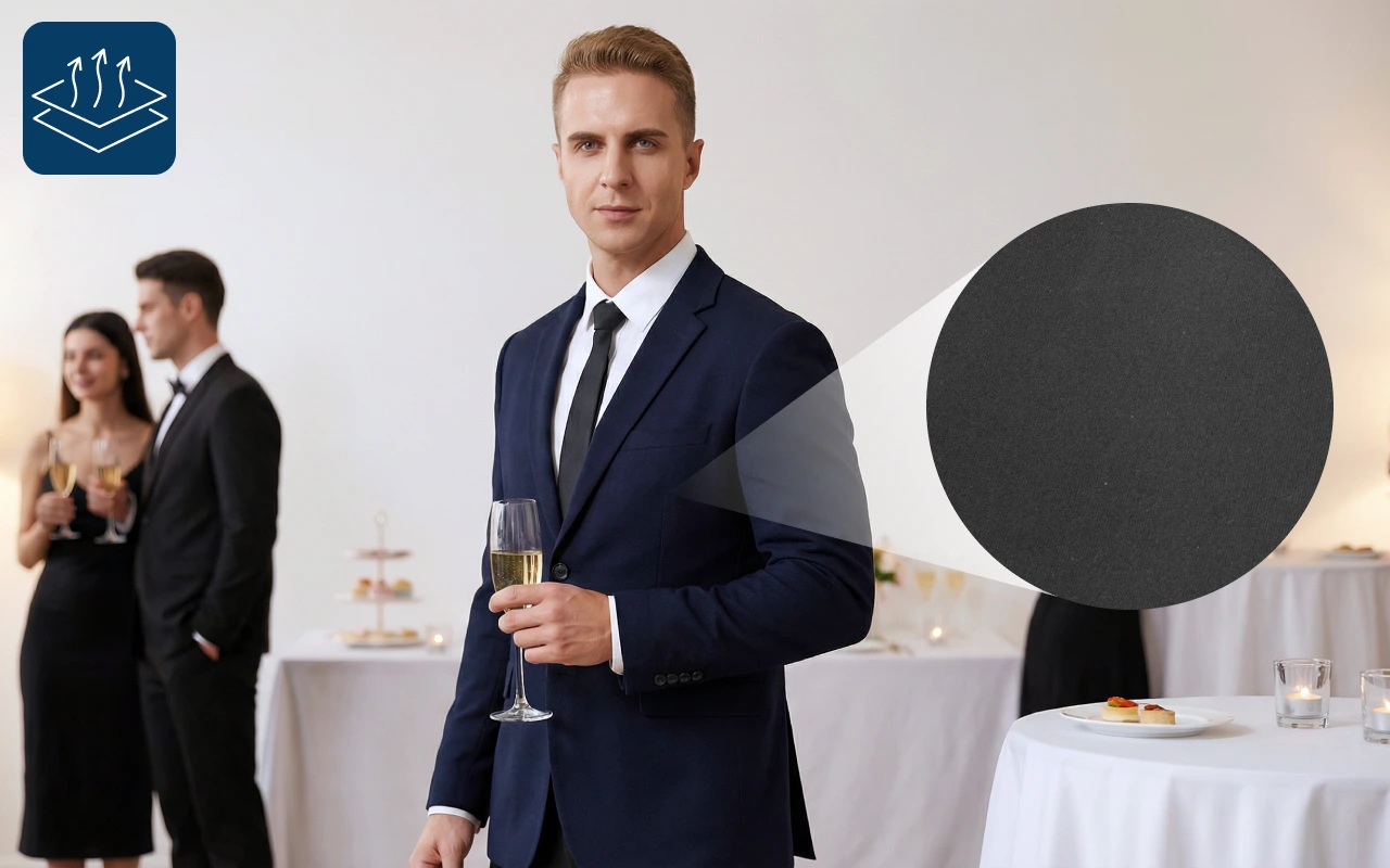Pustende materiale holder seg kjølig og lett under ethvert antrekk. Ingen klyping eller stramhet, slik at du kan bevege deg lett.
