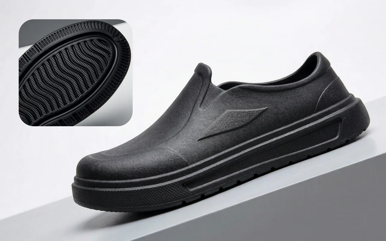 Jeg er kokk, og kjøkkengulv blir ofte grisete. Disse skoene holder vannet ute, sklir ikke på oljete flekker og er lette å rengjøre etter lange skift.