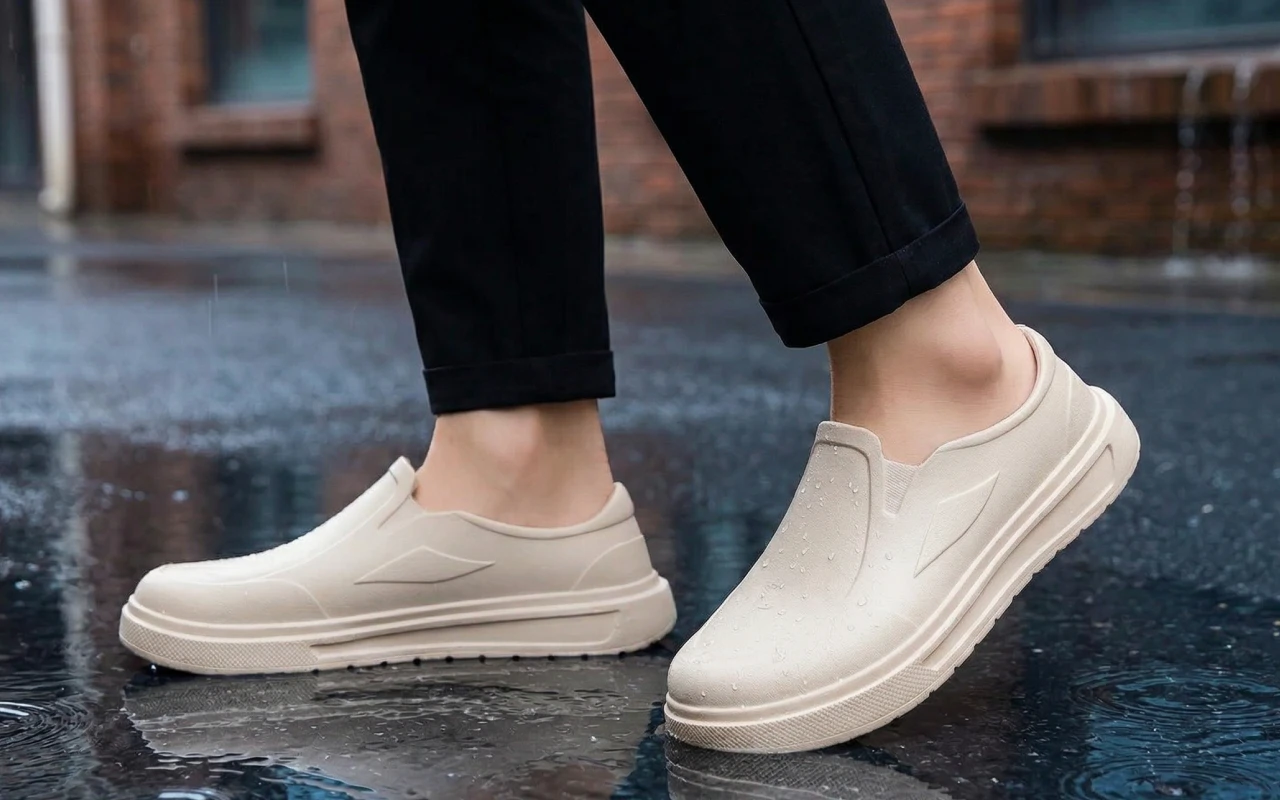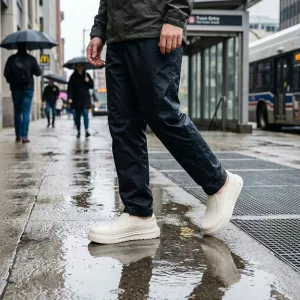 Kjøpte disse til helgeærender. Jeg bare trår inn og går. De takler pytter, våte parkeringsplasser og til og med glatte butikkgulv uten problemer.
