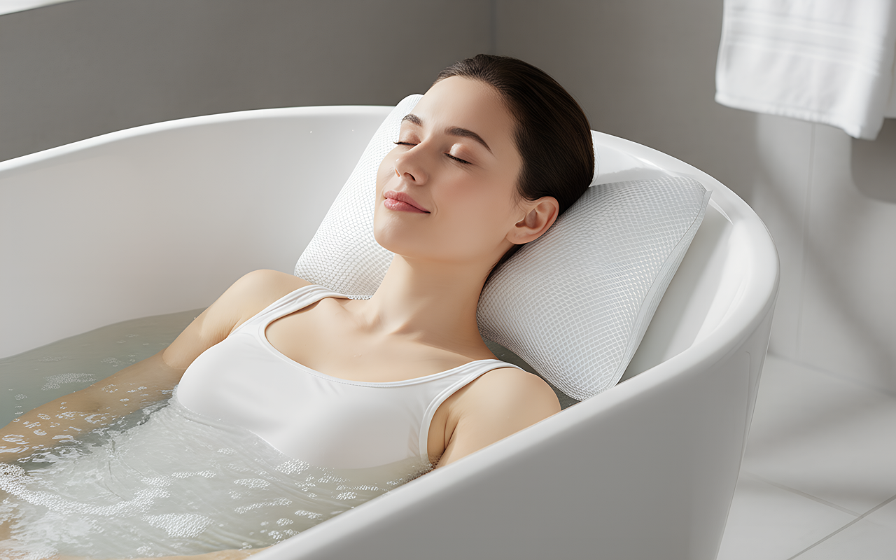 Ergonomisk design holder hodet ditt komfortabelt justert og sikkert. Opplev lindring for anspente muskler og fjern ubehag under badetiden.