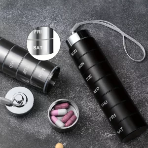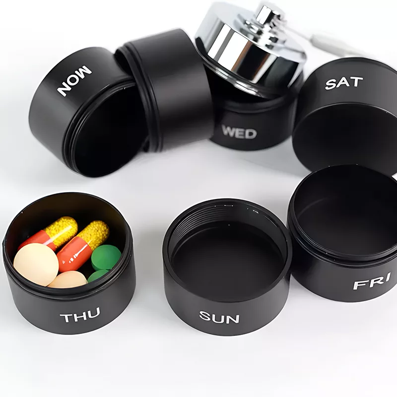 Ortorex-pilleboksen holder dem trygge, tørre og lette å finne. Ikke mer leting etter løse medisiner eller glemte doser. Hver seksjon er tydelig merket, slik at du holder deg organisert hele uken. Den kompakte utformingen passer fint i enhver veske eller lomme.