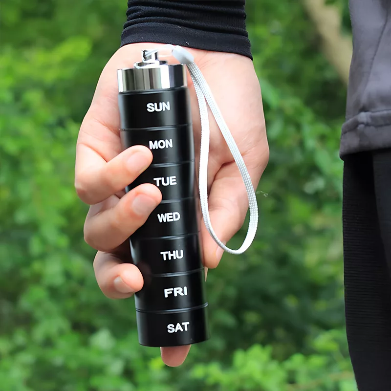 Pakk det viktigste for reiser, jobb eller skole uten bekymring. Den lette konstruksjonen og det sterke metallet holder medisinen trygg på farten.