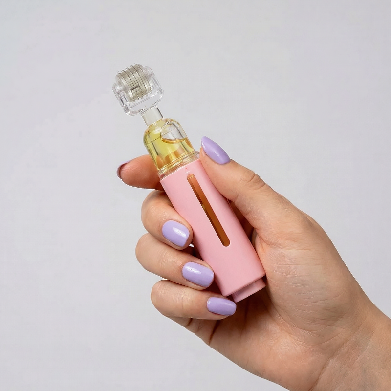 Vår mikronål-roller er behagelig å bruke hjemme uten styr. Den er designet for trygge, raske økter som passer travle timeplaner.