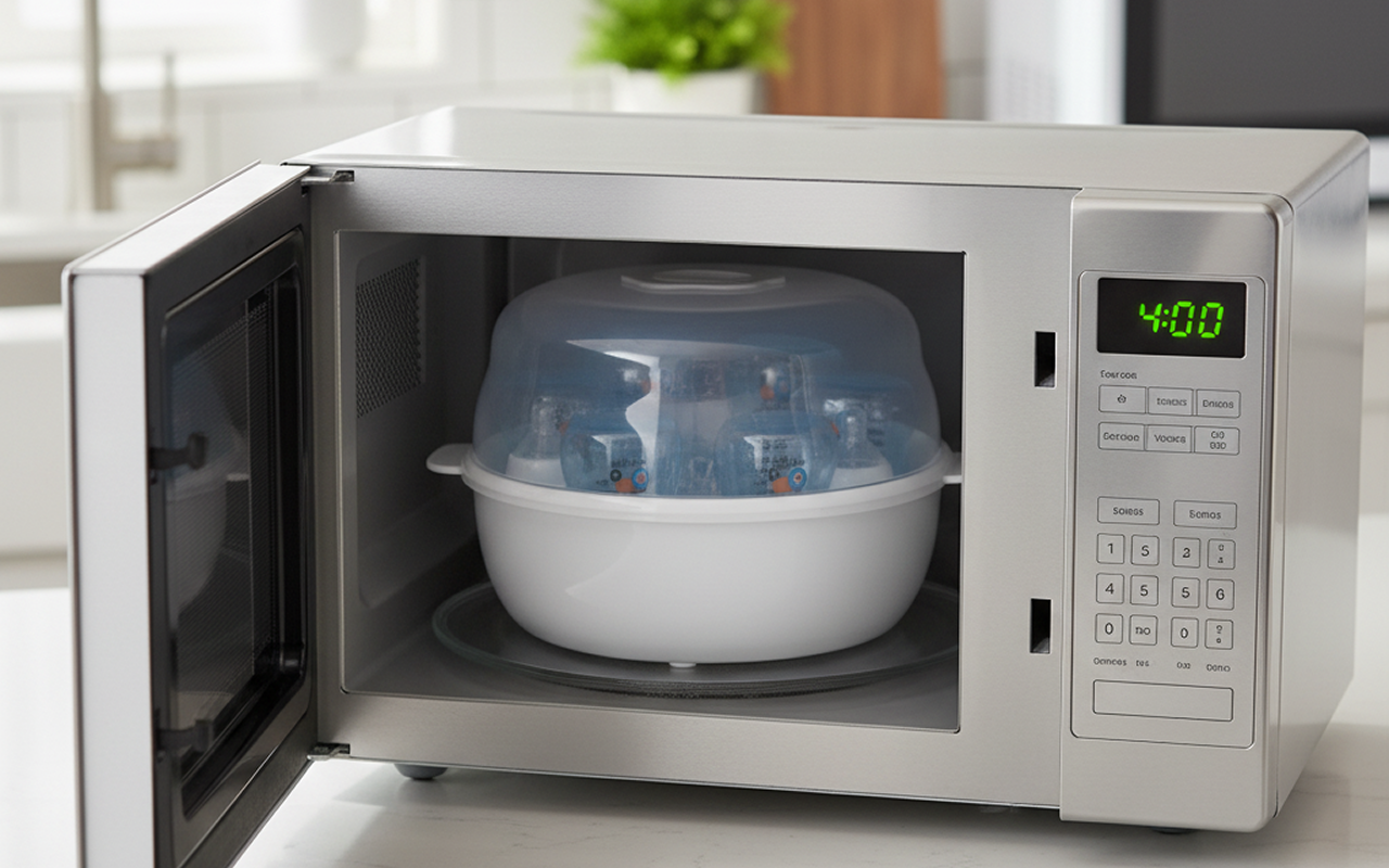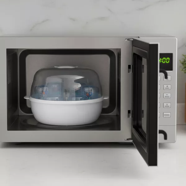Passer lett i mikrobølgeovnen min og er mye raskere enn å koke vann. Jeg stoler på at den holder bakteriene borte fra babyens flasker.