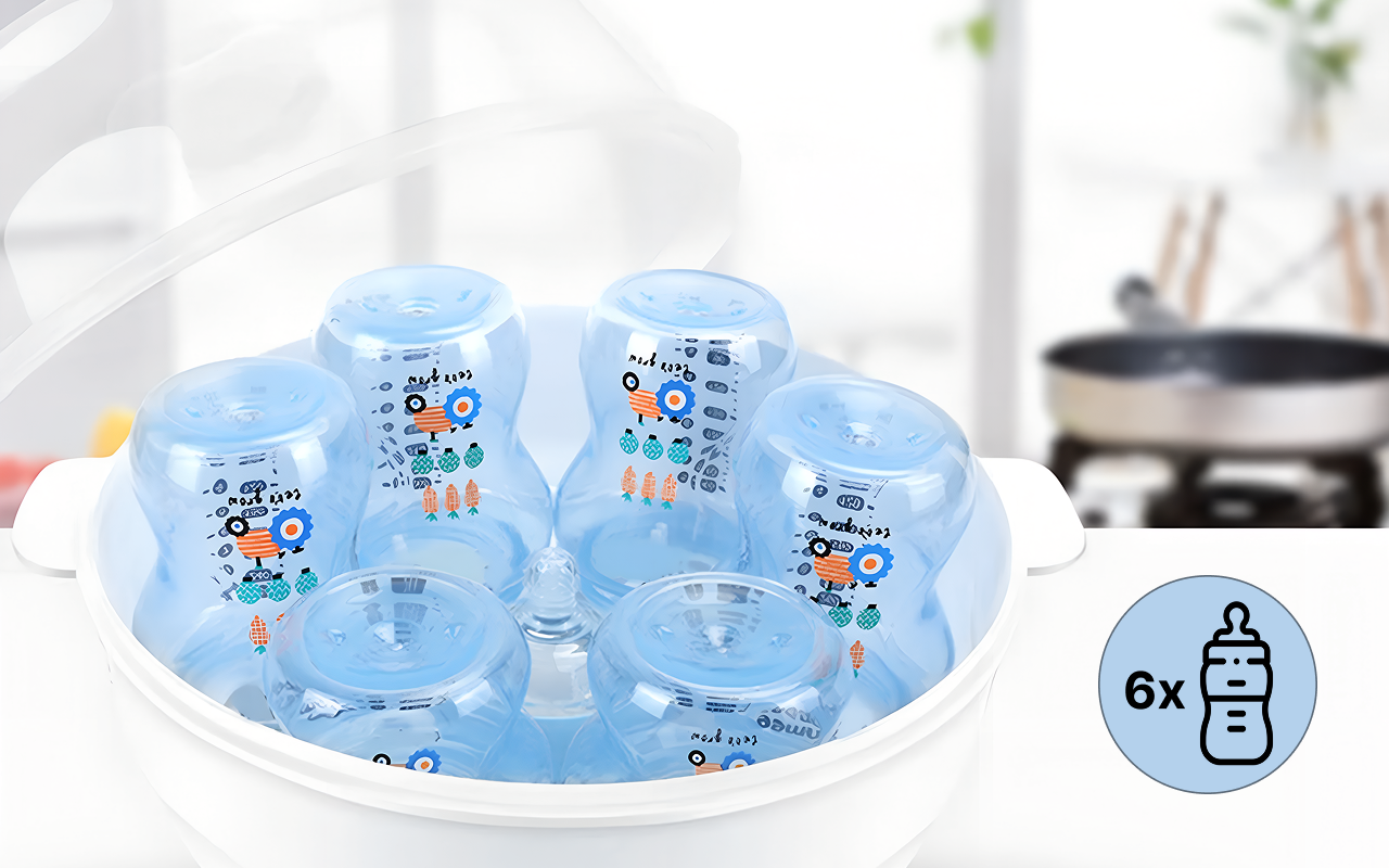 Det er enkelt å holde babyartikler helt rene hver dag. Damp dreper bakterier raskt, slik at barnet ditt er tryggere. Seks flasker får lett plass, noe som betyr færre omganger er nødvendig.