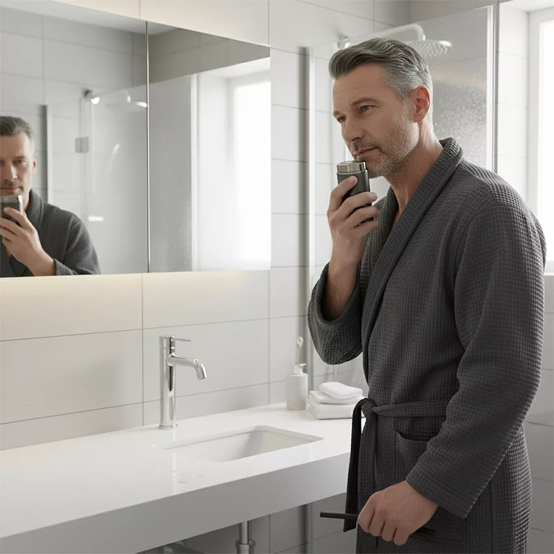 Jeg tar med denne elektriske barbermaskinen på jobb for raske oppfriskninger før møter. Den er så stille at ingen engang merker det.