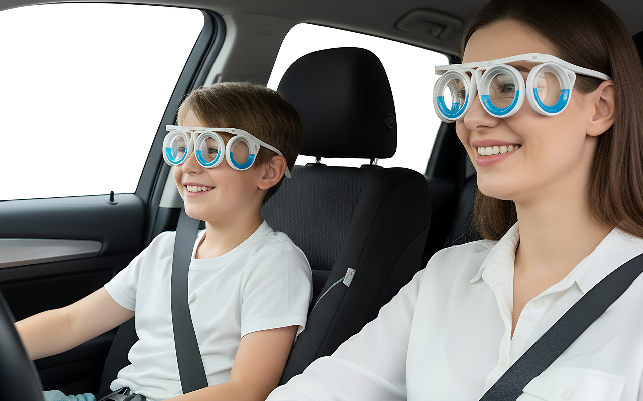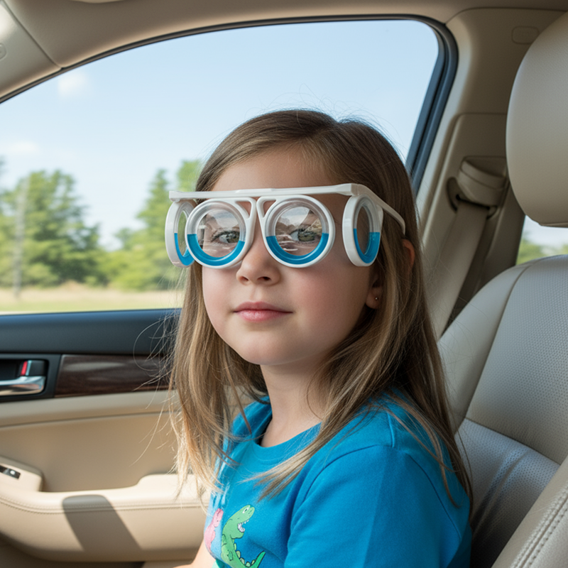 Nyt en fredelig tur etter bare ti minutter. Disse brillene fungerer raskt for å lindre kvalme mens du er i bevegelse.