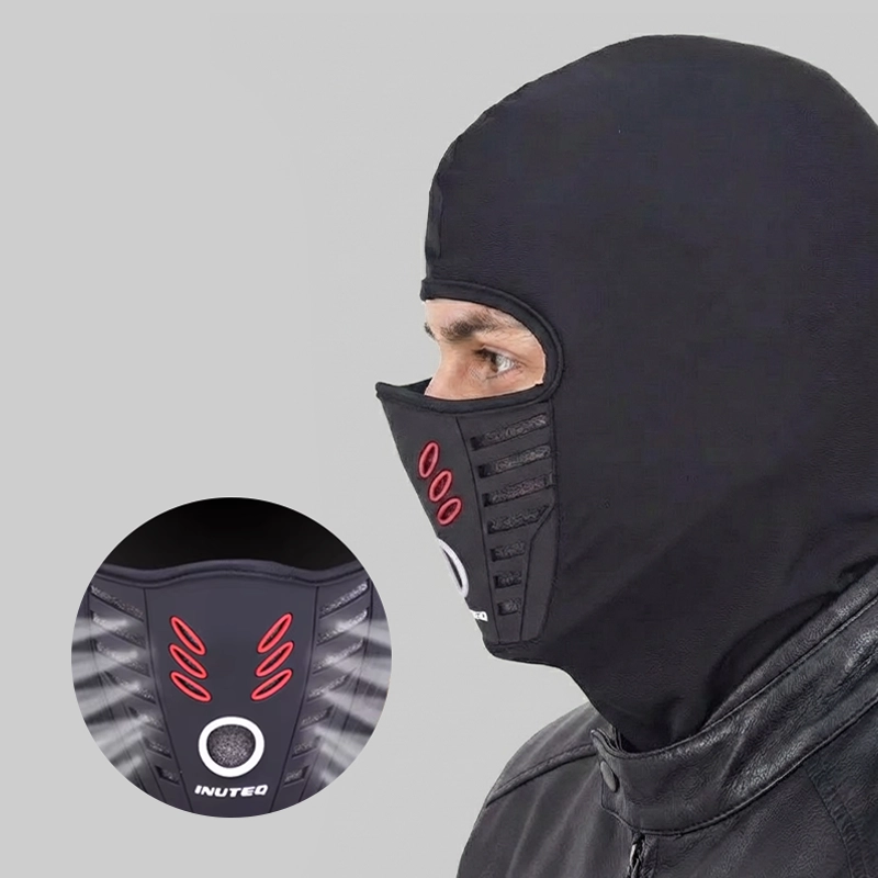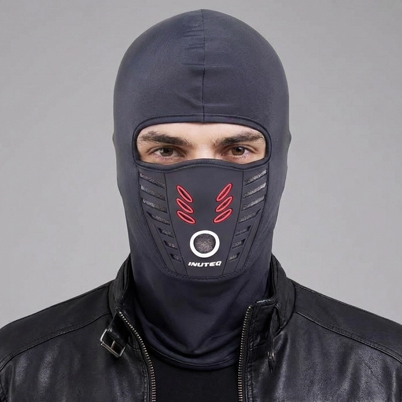 Jeg bruker denne balaklavaen under hjelmen hver morgen. Den blokkerer kald vind, så ansiktet mitt fryser aldri på vei til skolen.