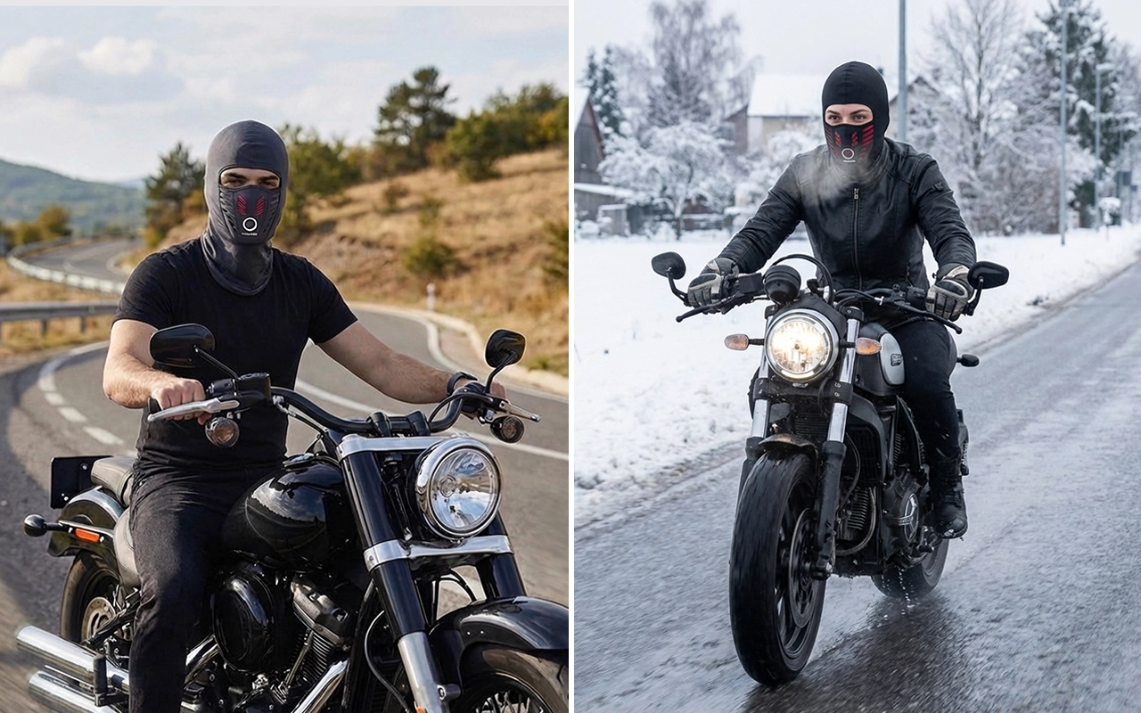 Kveldsturene mine på motorsykkel har blitt mye mer behagelige! Den sitter tett, faller aldri av, og holder insekter unna ansiktet mitt.