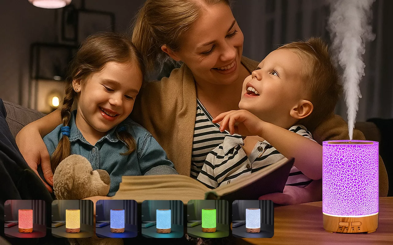 Lyset fra denne diffusoren gir varme til rommet ditt. Ulike lysfarger passer til enhver stemning eller anledning.