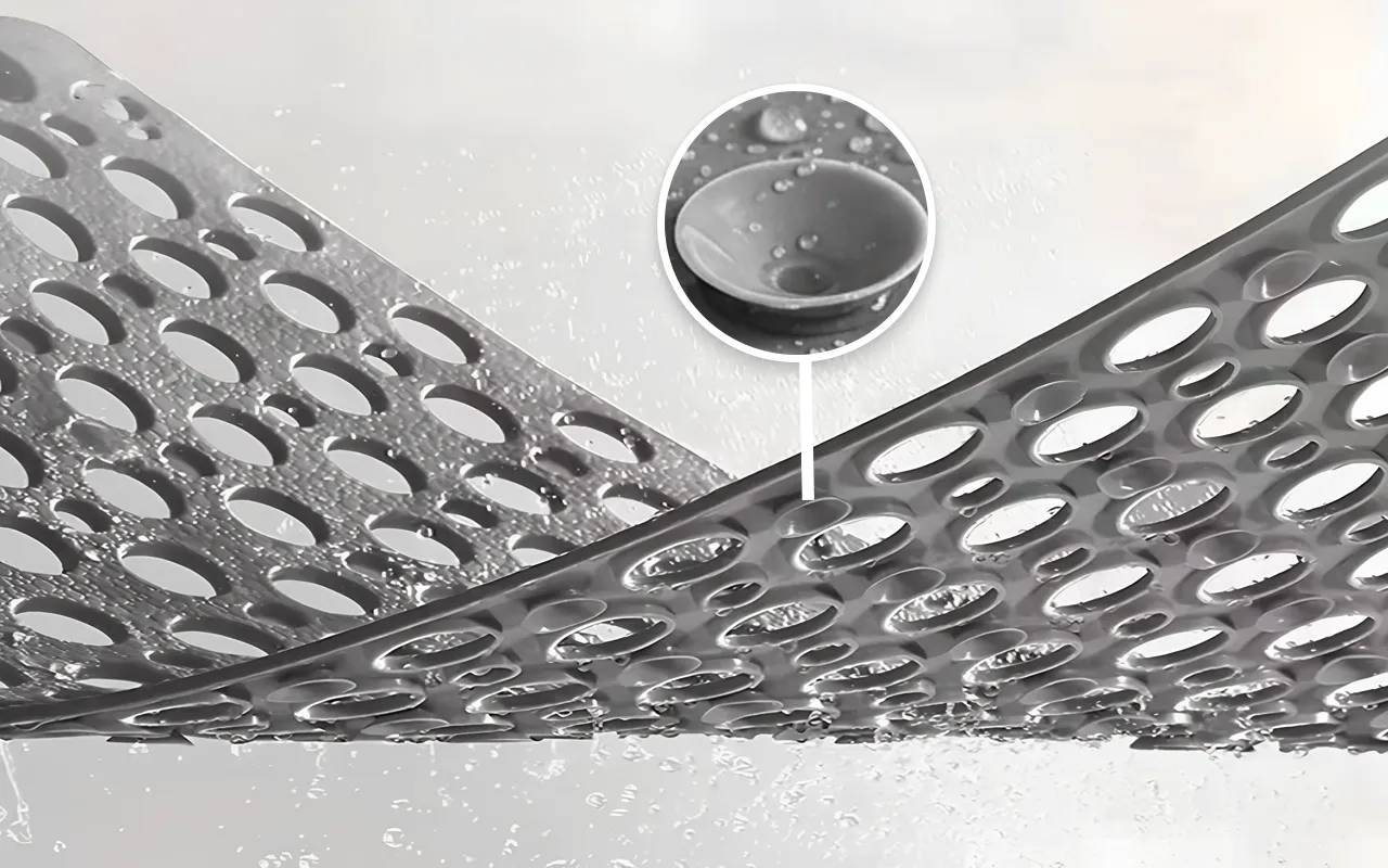 Sugekopper med høy styrke holder matten godt på plass på våte fliser. Familien din kan bevege seg trygt uten plutselige glipper.