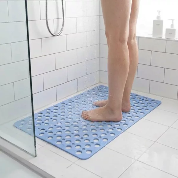 Kjøpte denne for dusjene etter trening. Sugekoppene sitter skikkelig godt, ingen glidning i det hele tatt, og den teksturerte toppen avslapper de slitne føttene mine mens vannet skyller over dem.