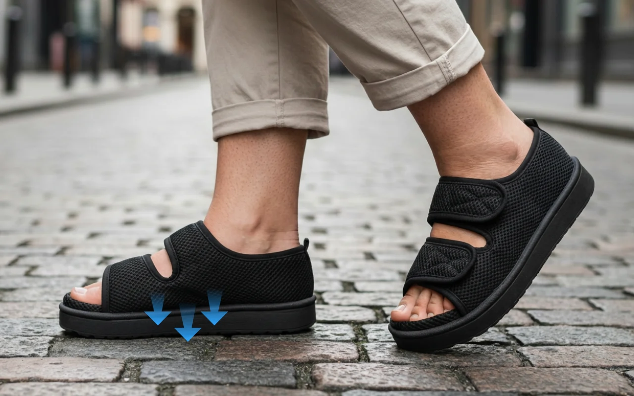 Disse diabetesskoene hjalp de hovne tærne mine veldig. Den åpne fronten forhindrer gnaging, og borrelåsstroppen gjør dem enkle å justere gjennom dagen.